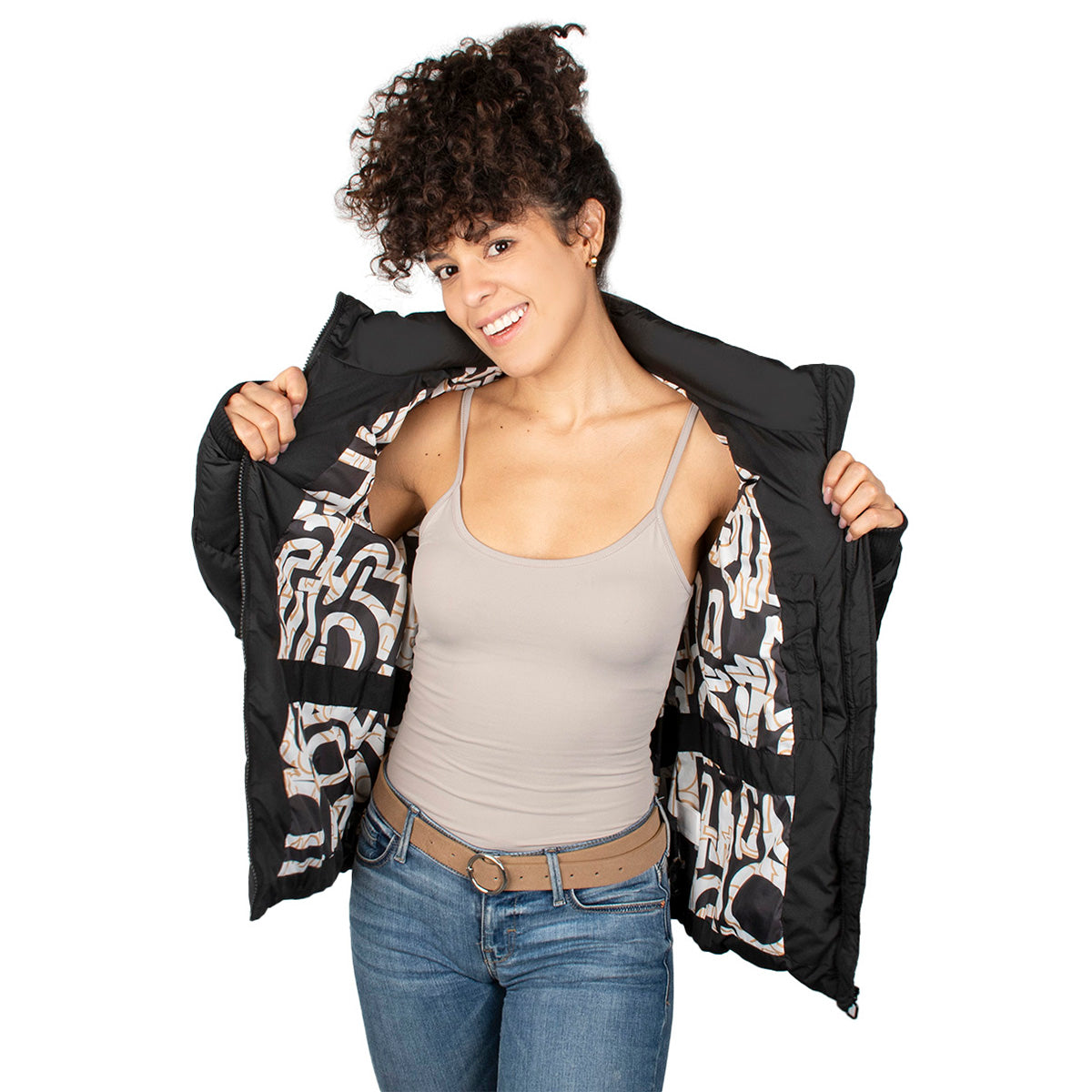 ¡Nuestra chamarra capitonada es la prenda perfecta para destacar con audacia! Su forro con estampado llamativo es un detalle que revela tu personalidad única en medio de la multitud. Con un estilo lifestyle, esta chamarra cuenta con un cierre grueso completo y bolsillos laterales con botón. Además, el bolsillo superior con cierre es una solución práctica para guardar tus objetos esenciales. El cuello alto te protege del viento y el frío, mientras que el gorro fijo ajustable te permite adaptar tu estilo a las cambiantes condiciones climáticas. Por último, su ruedo ajustable elástico y los puños en cárdigan no solo garantizan un ajuste cómodo, sino que también añaden un toque de sofisticado.