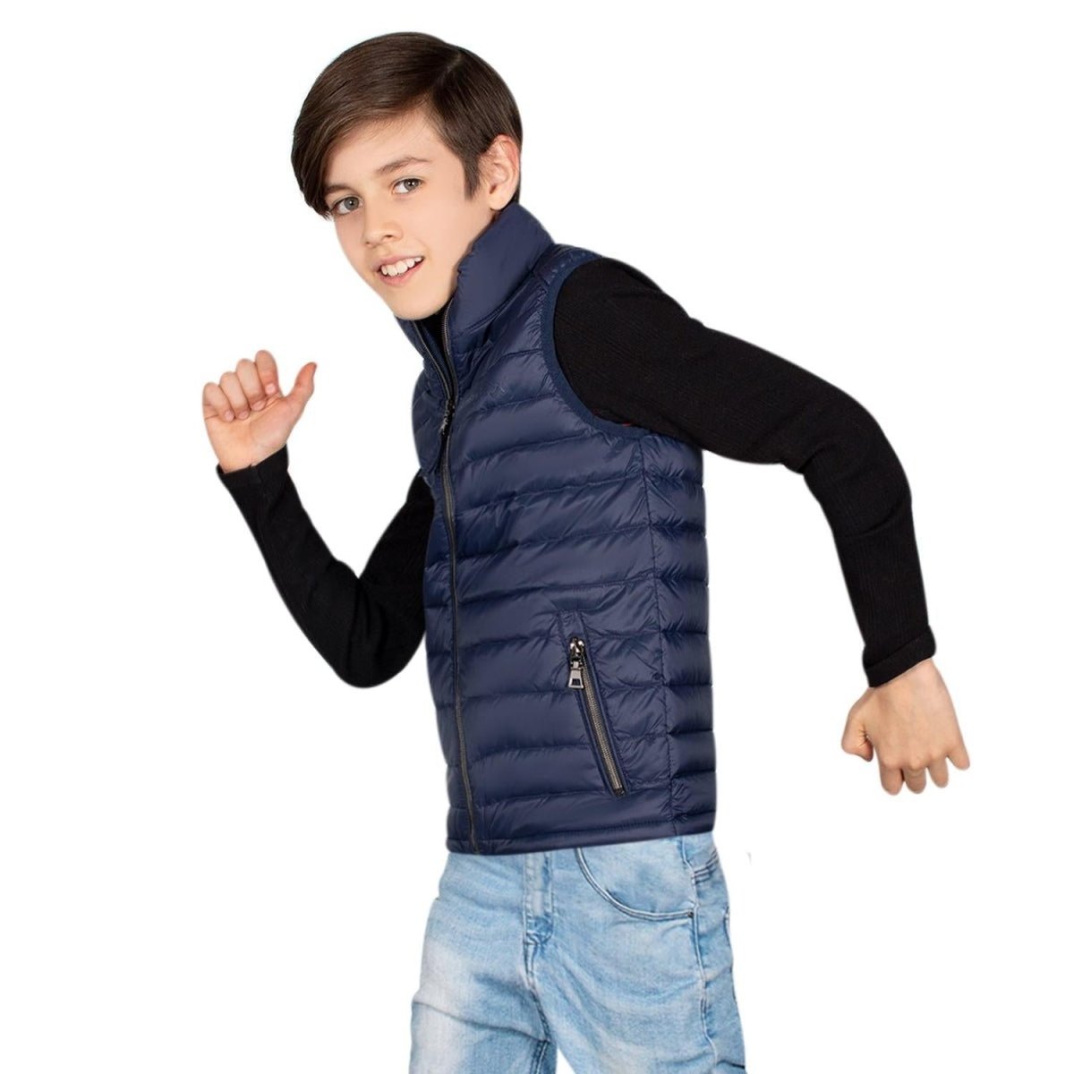 Deja de sumar cada vez más capas de ropa en los niños este invierno, existe ya una prenda que te brinda la solución inmediata, el chaleco. Un diseño de estilo all time que brinda flexibilidad y libertad de movimiento para que tu pequeño disfrute de todas sus aventuras. Cuenta con cremallera completa, cuello alto, dos bolsillos con cierre a los lados y uno superior, dos bolsillos internos y una extrema ligereza que permite compactarlo muy fácilmente gracias a su relleno de pluma.