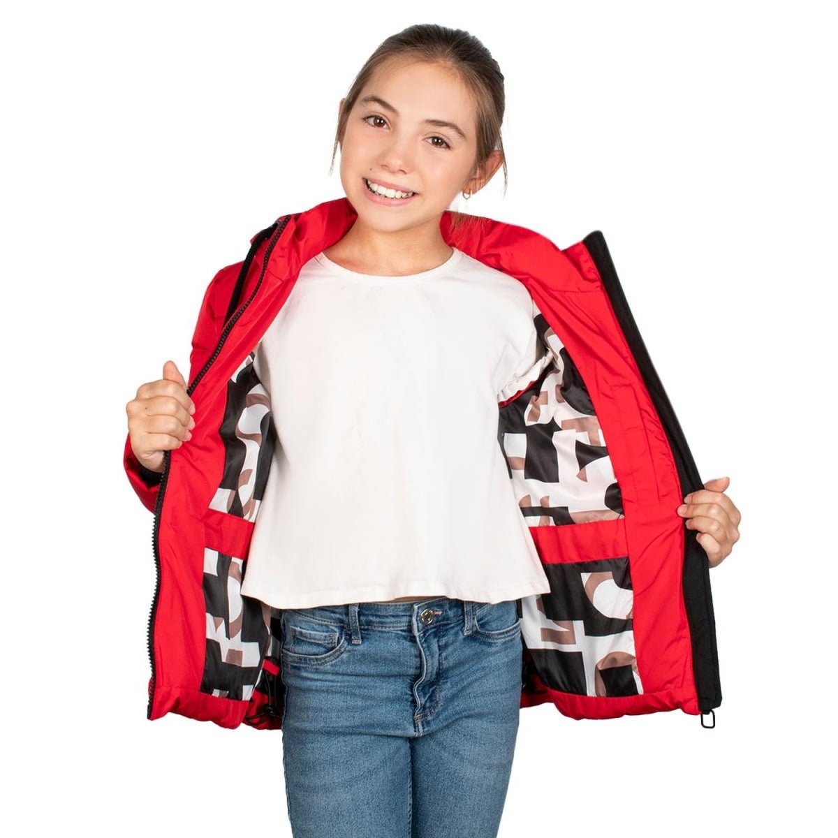 Esta chamarra capitonada para niña es la combinación perfecta de estilo, comodidad y detalles únicos. Con capucha ajustable por cordones y un estampado de goma al final, cuenta con ojetillos personalizados para un toque moderno. La aletilla y el bolsillo de pecho con cierre en contraste y jaladeras personalizadas añaden funcionalidad y estilo. Los bolsillos en los costados, con abertura en tela contraste y broches de presión ocultos, brindan un diseño práctico y chic. El forro estampado en el cuerpo, el forro de las bolsas de pecho en poliéster liso y el fleece en los costados aseguran confort y calidez. Los puños dobles con rib y el parche de goma con placa metálica en la manga completan este look único y a la moda. ¡Perfecta para mantenerla abrigada y con estilo durante todo el día!