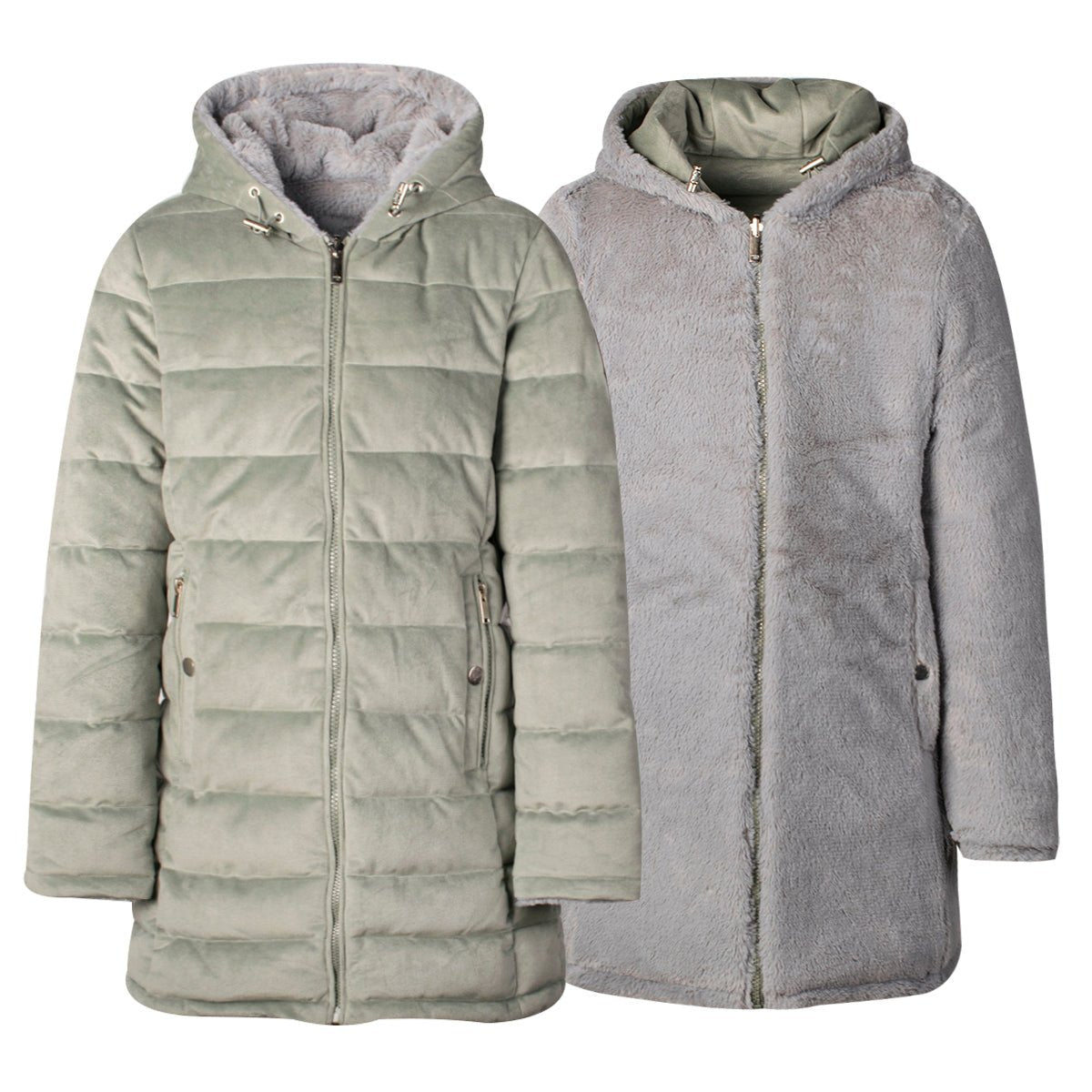 Prepara a tu pequeña para sus aventuras y juegos con nuestra chamarra reversible con gorro ajustable y jaretas. Con una vista elegante de terciopelo capitonado, cierre completo frontal y bolsillos laterales con cierres. La segunda vista, en fur, proporciona un aspecto acogedor con bolsillos a los costados con broches de presión. ¡Dos estilos en uno para que disfrute sin preocupaciones durante sus exploraciones y juegos!