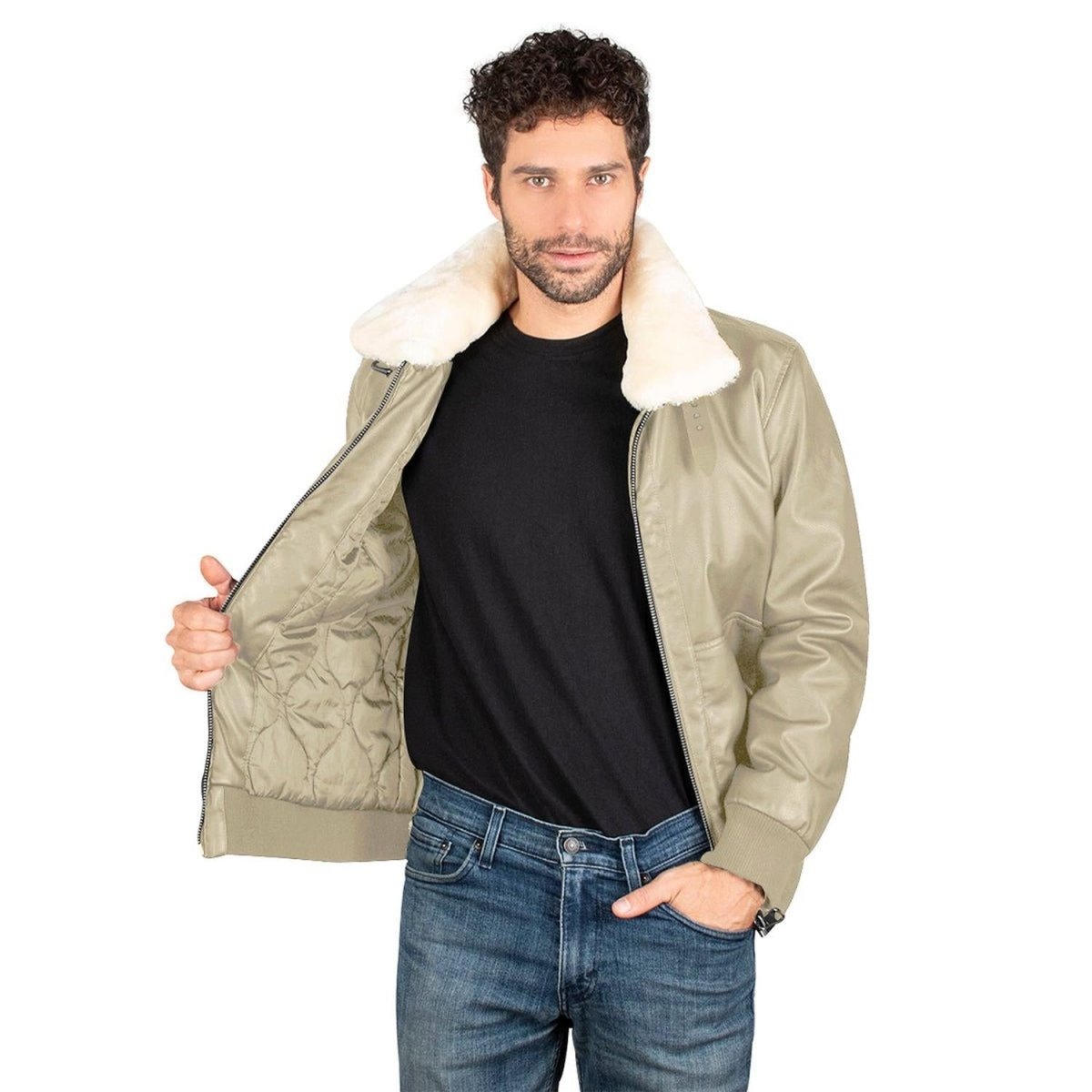 Chamarra Vinipiel Polar Tipo Bomber Hombre