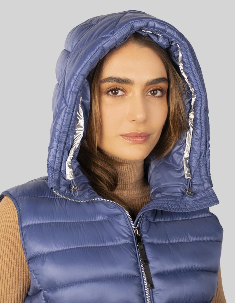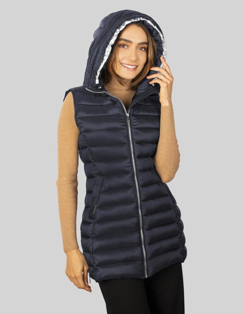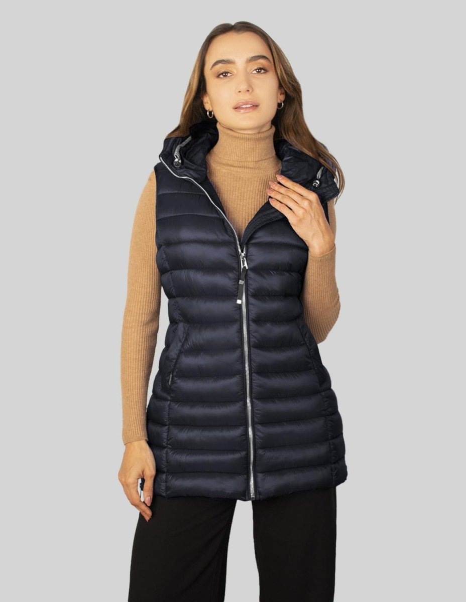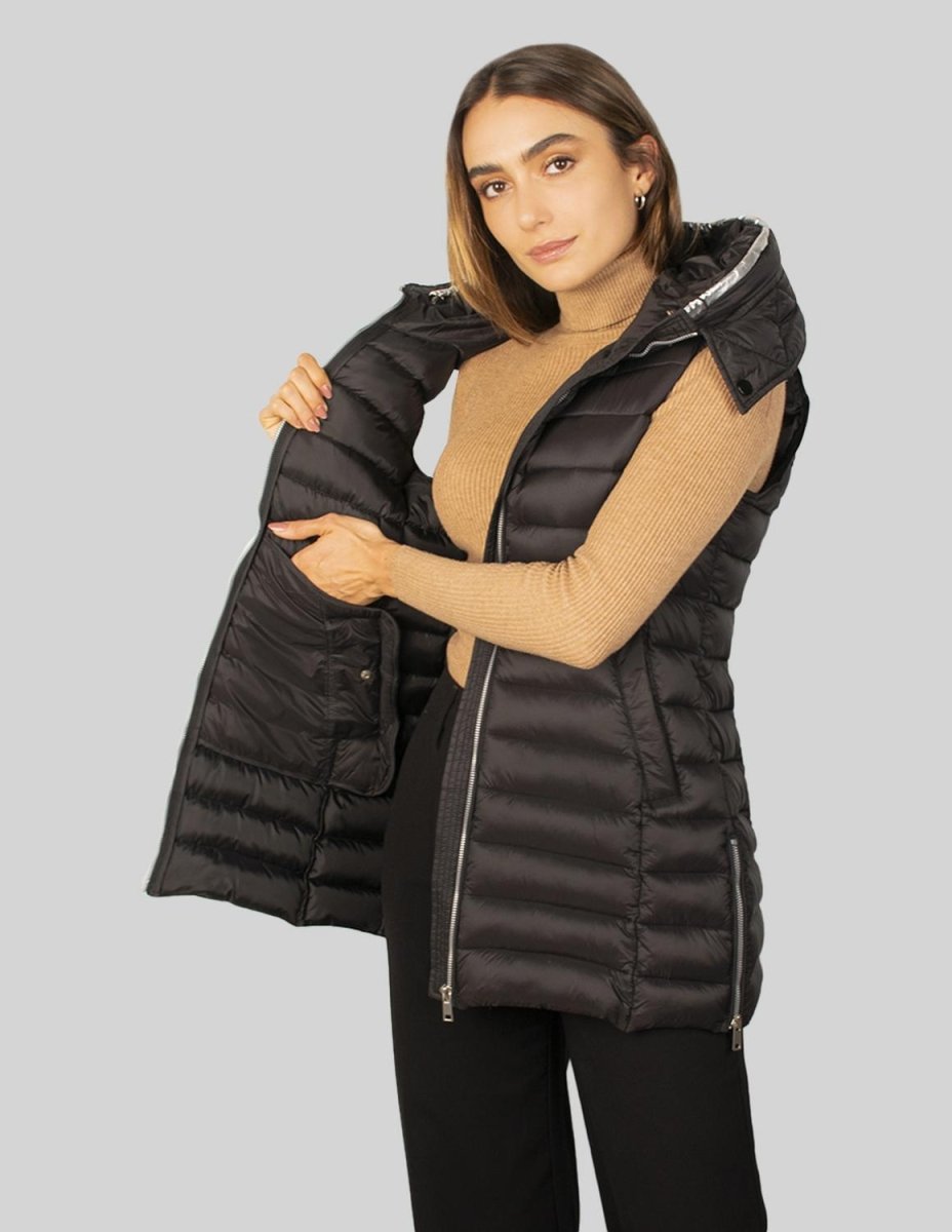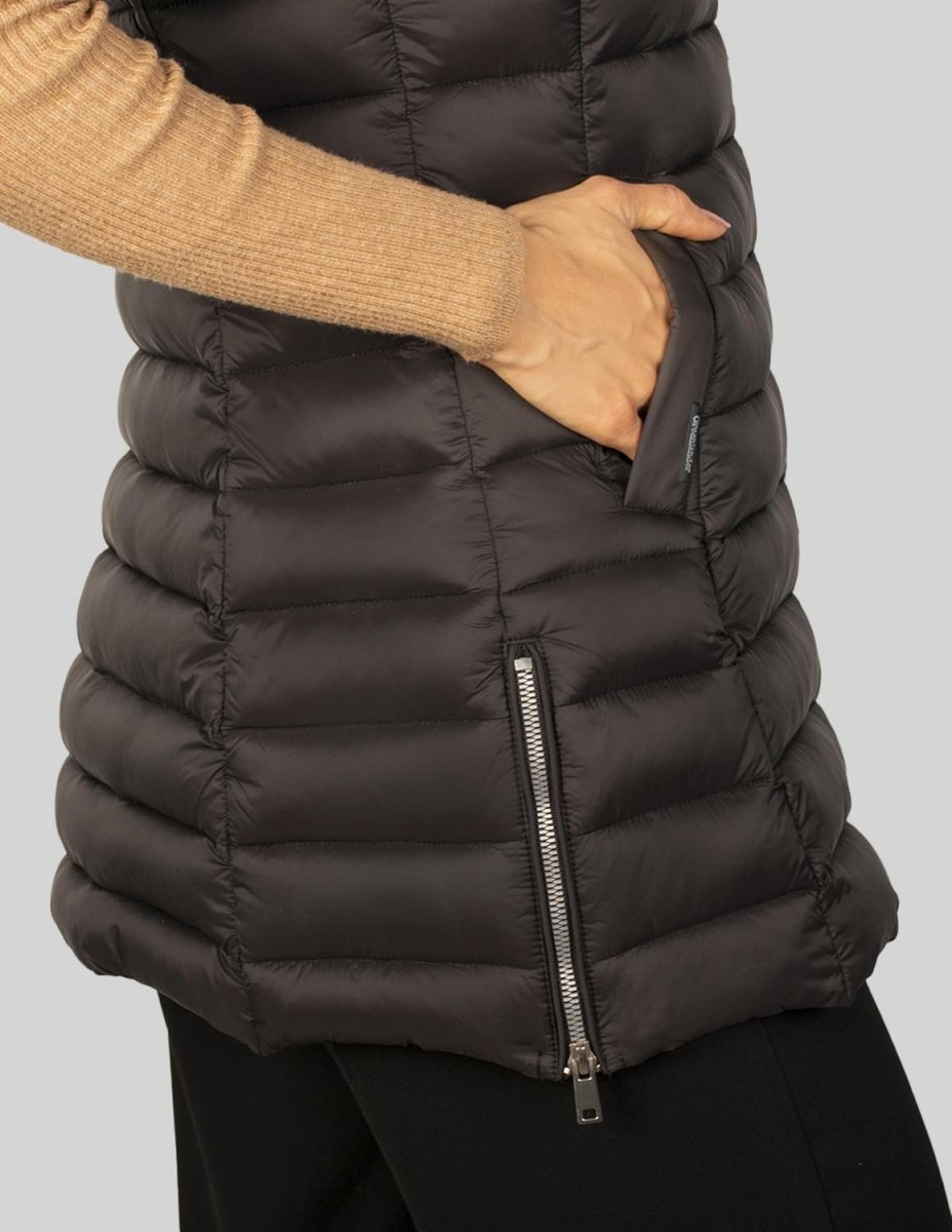Chaleco largo capitonado para mujer con bolsos al costado Greenlander