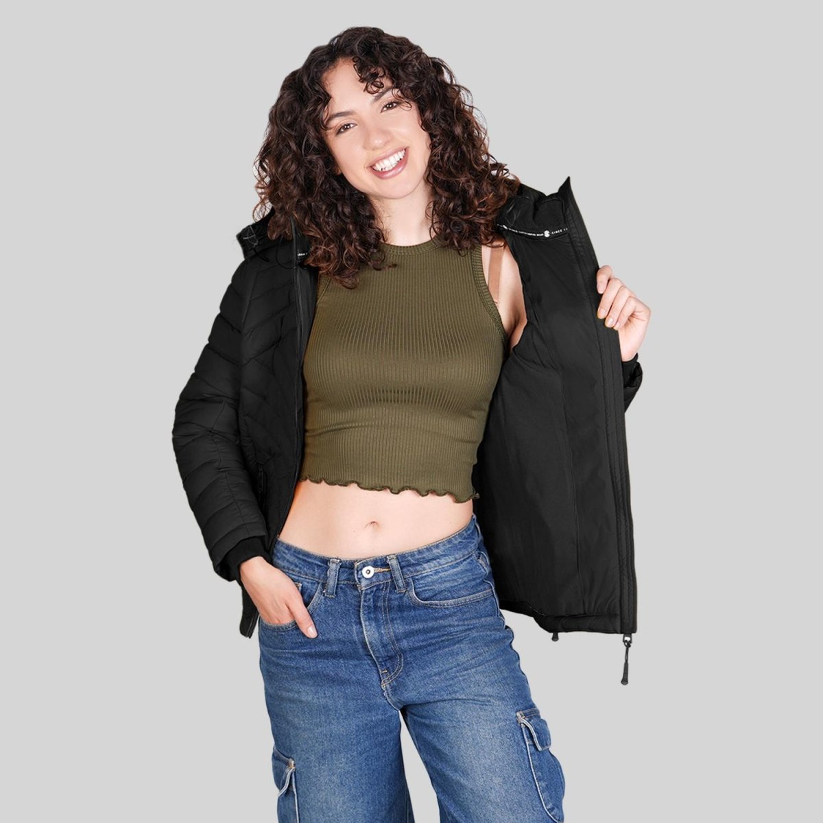 Chamarra capitonada para mujer con cuello alto y bolsillos a los costados Greenlander