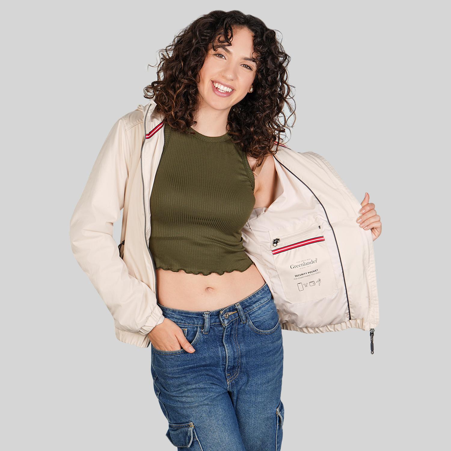 Chamarra de poliester para mujer con capucha oculta Greenlander