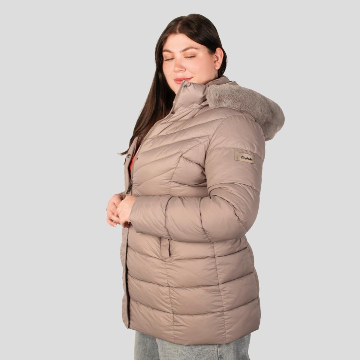 Chamarra larga capitonada plus size para mujer con bolsos al costado Greenlander