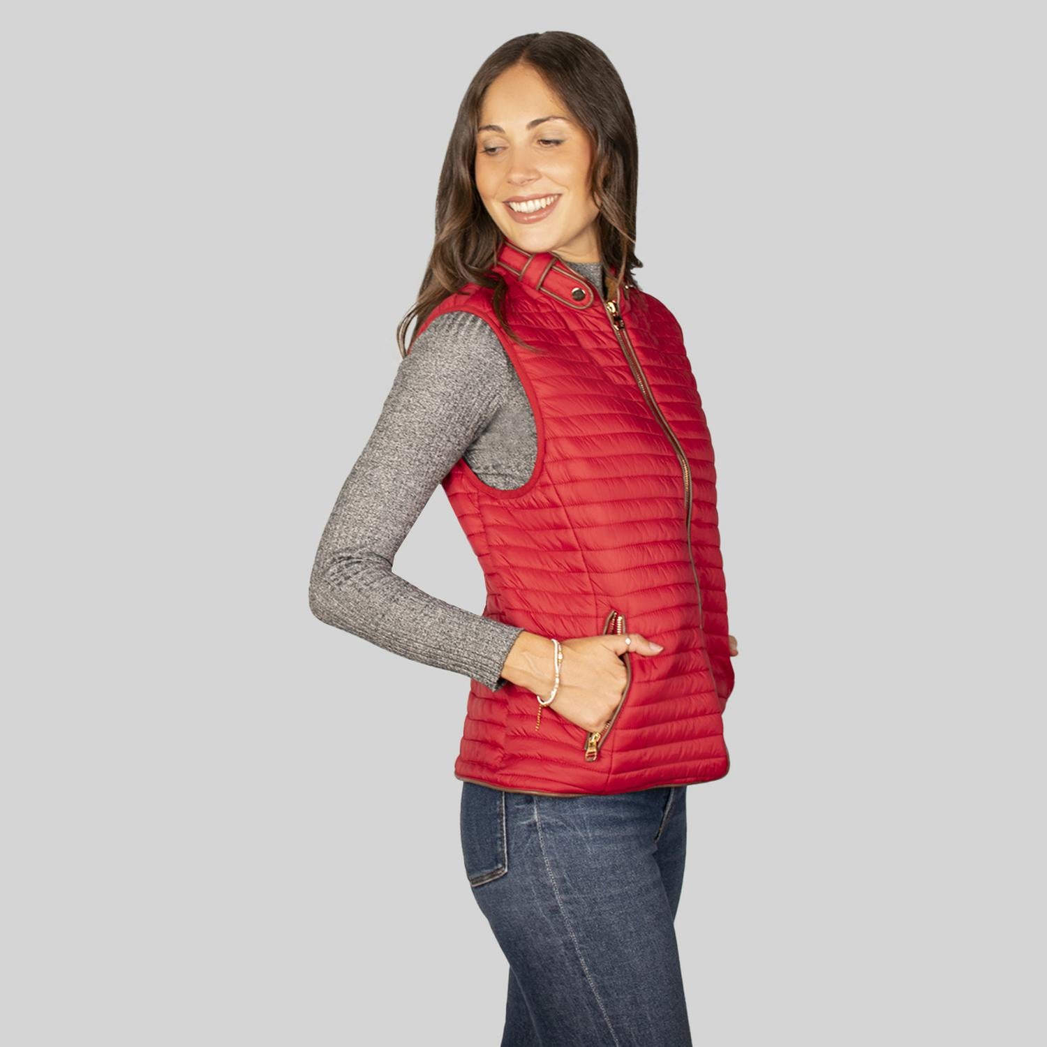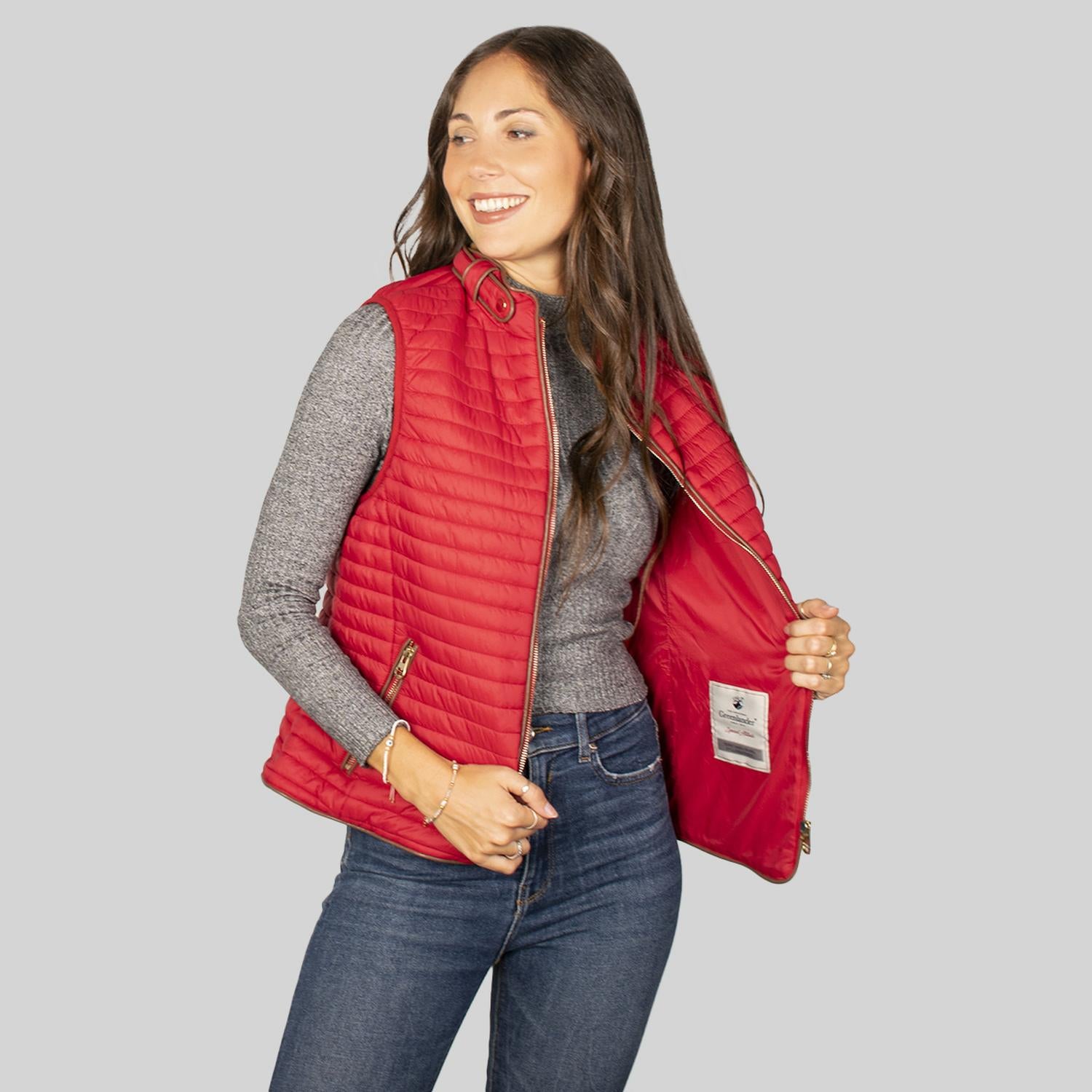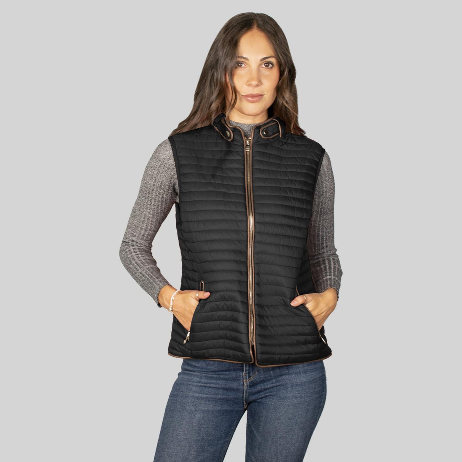 Chaleco capitonado para mujer con cuello mao y bolsas a los costados Greenlander