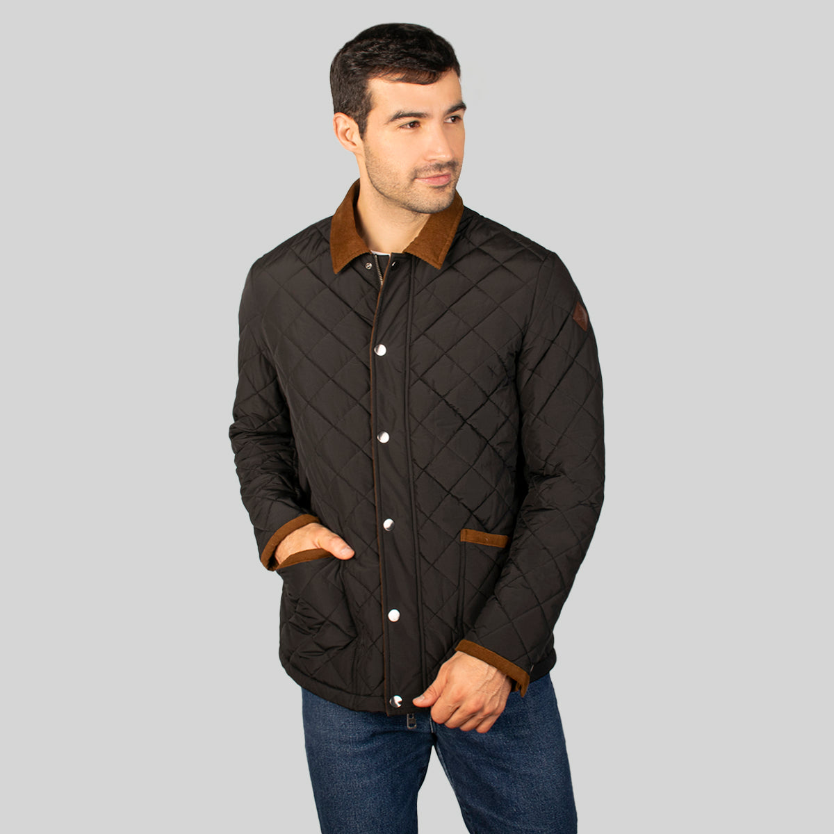 Estilo elegante y completo. Una chamarra capitonada con diseño de rombos que permite mantener tu temperatura corporal, su cuello diseño camisa hace de ella la elegancia que necesitas en tu día a día.
