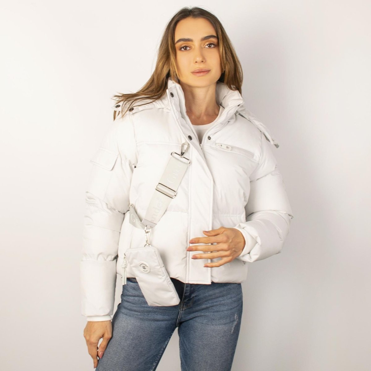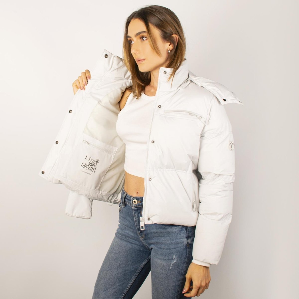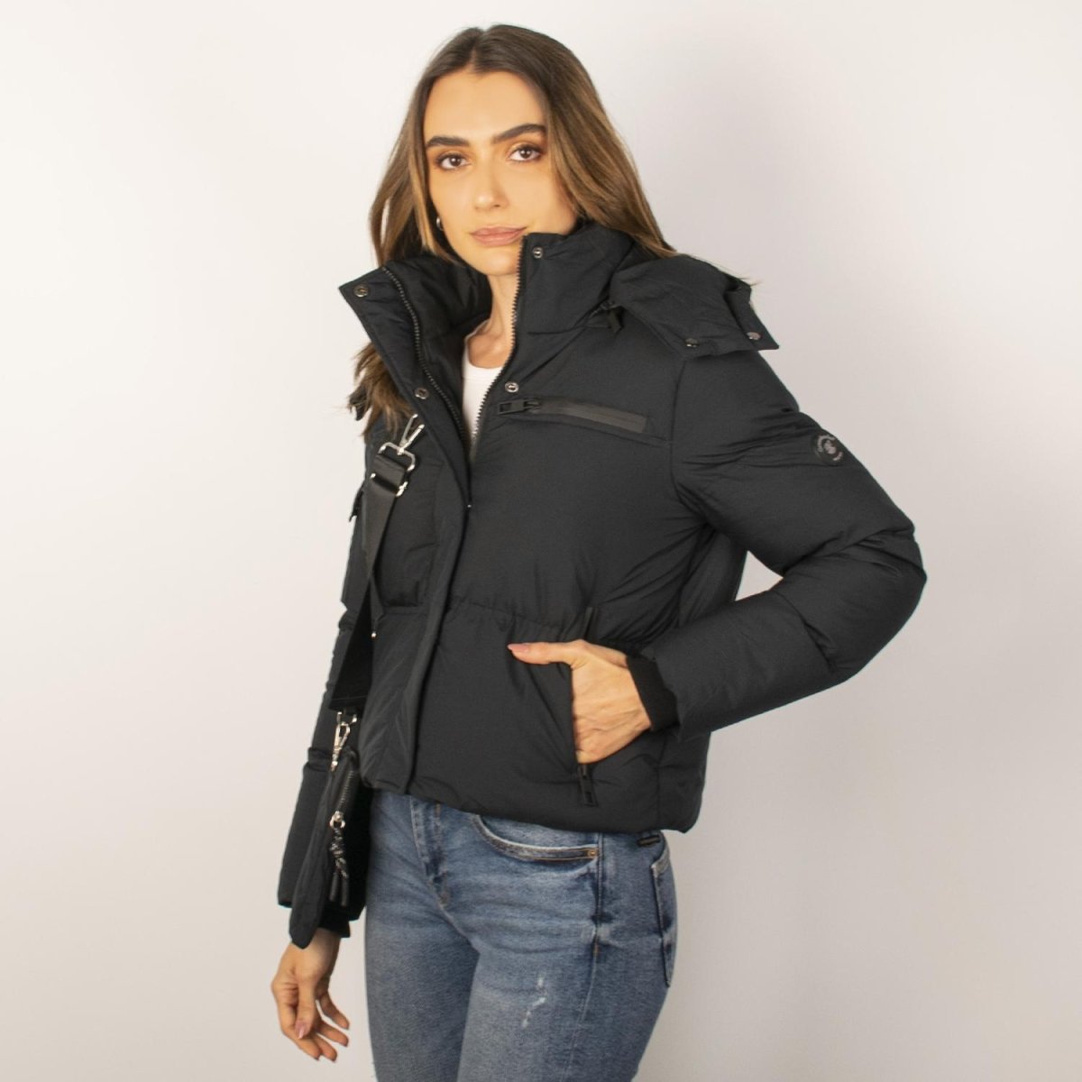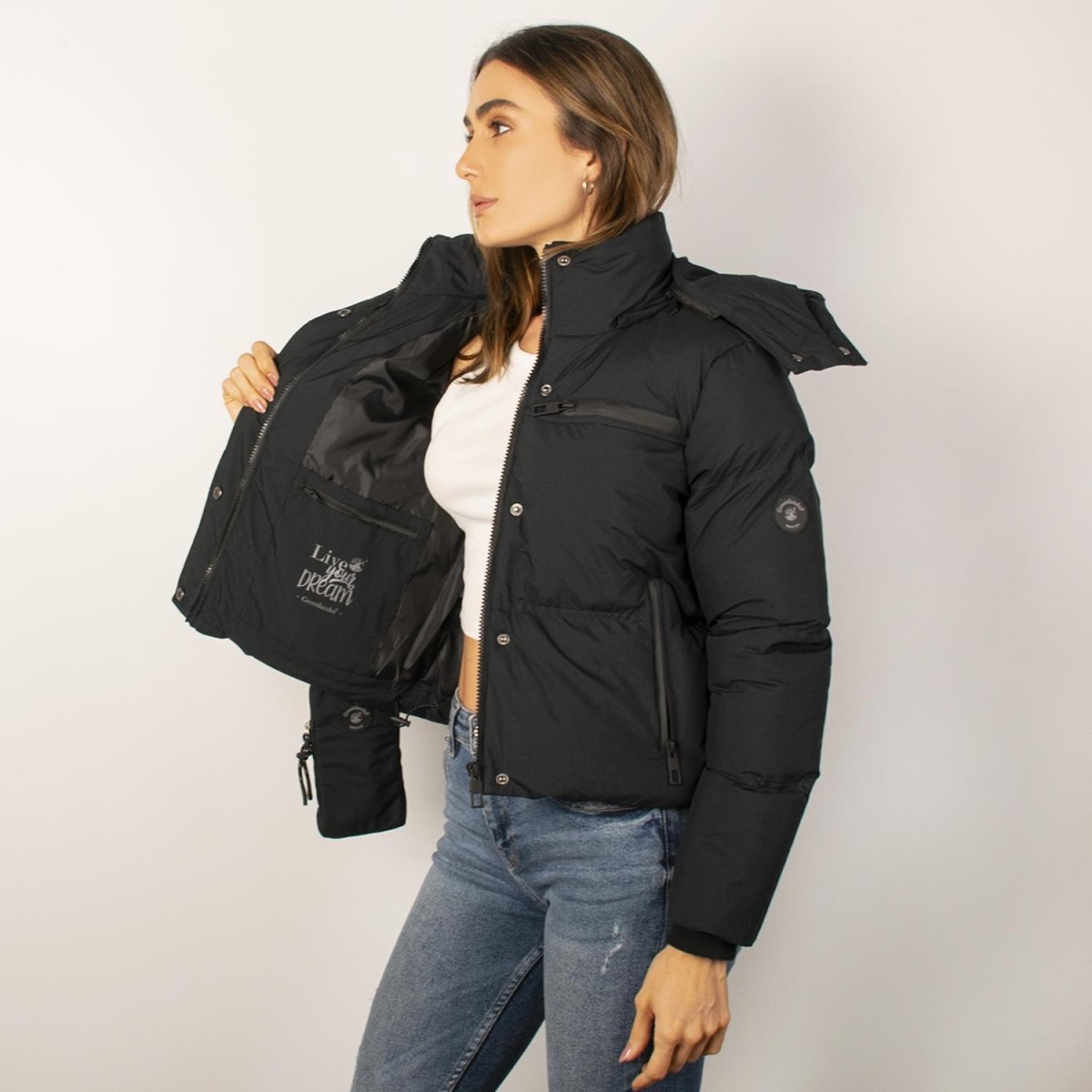 Chamarra Greenlander corta capitonada para mujer con capucha desmontable