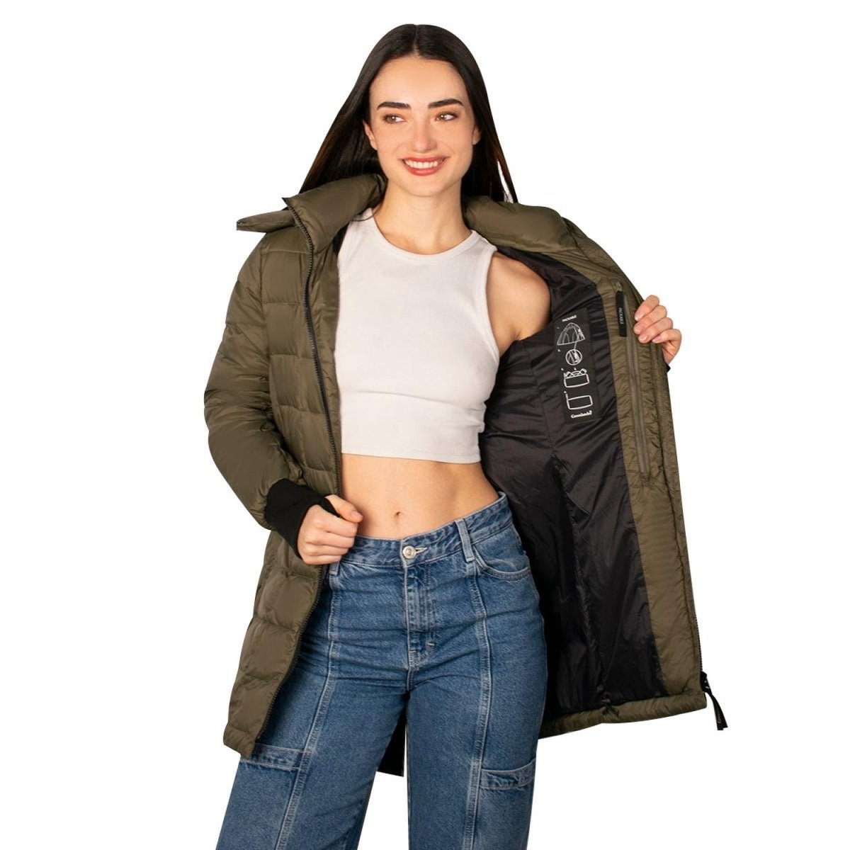 Chamarra Larga Capitonada Mujer