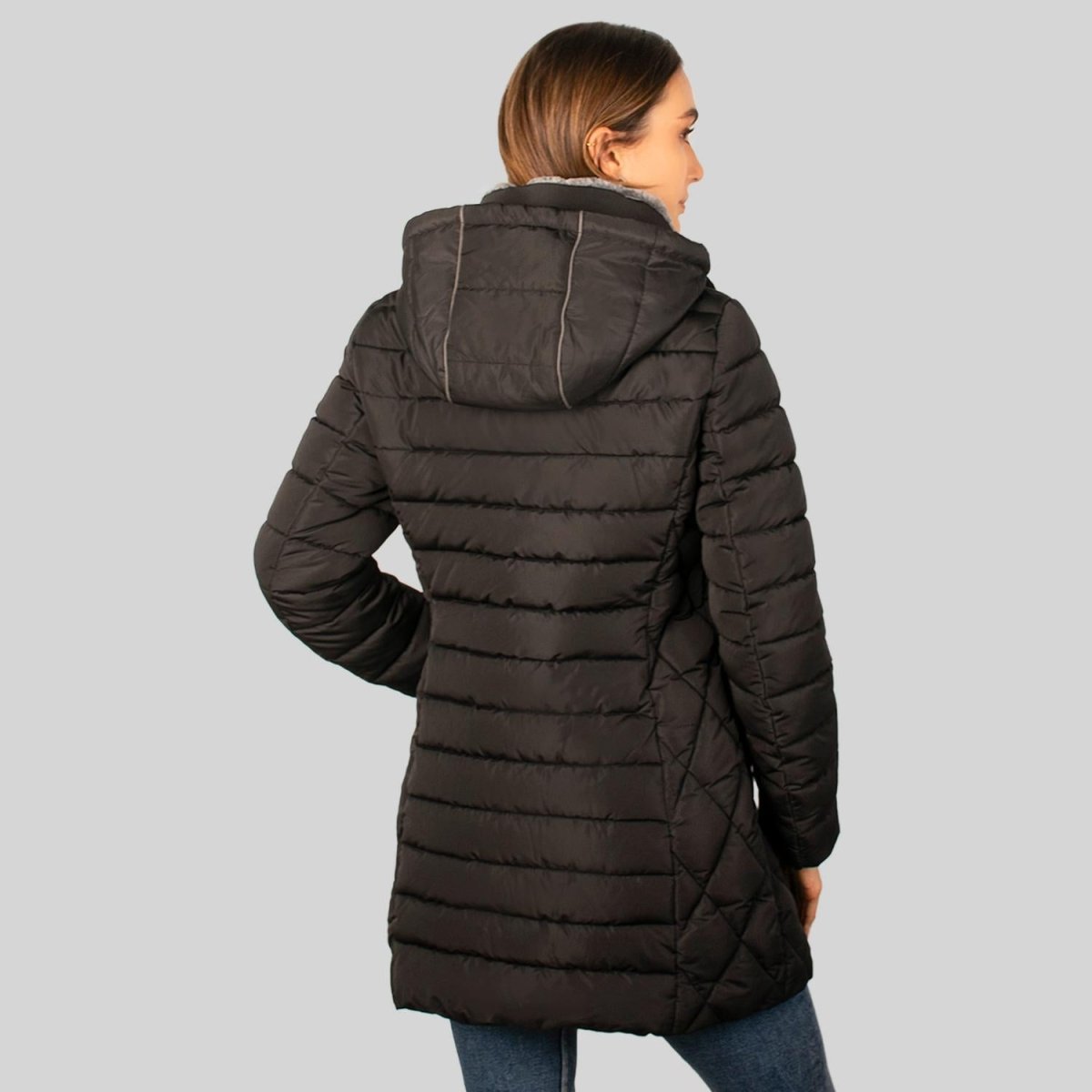 Chamarra larga capitonada: Retiene aire en sus celdas que impiden la fuga de calor corporal y bloquean el frío exterior creando un aislamiento térmico. Suelen ser más cómodas y permiten mayor libertad de movimiento.