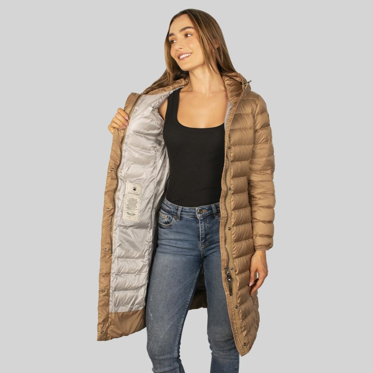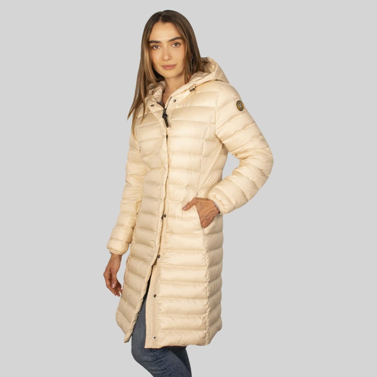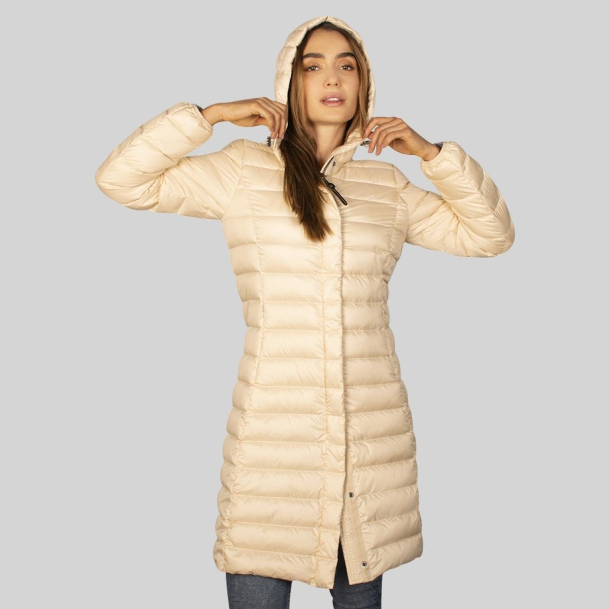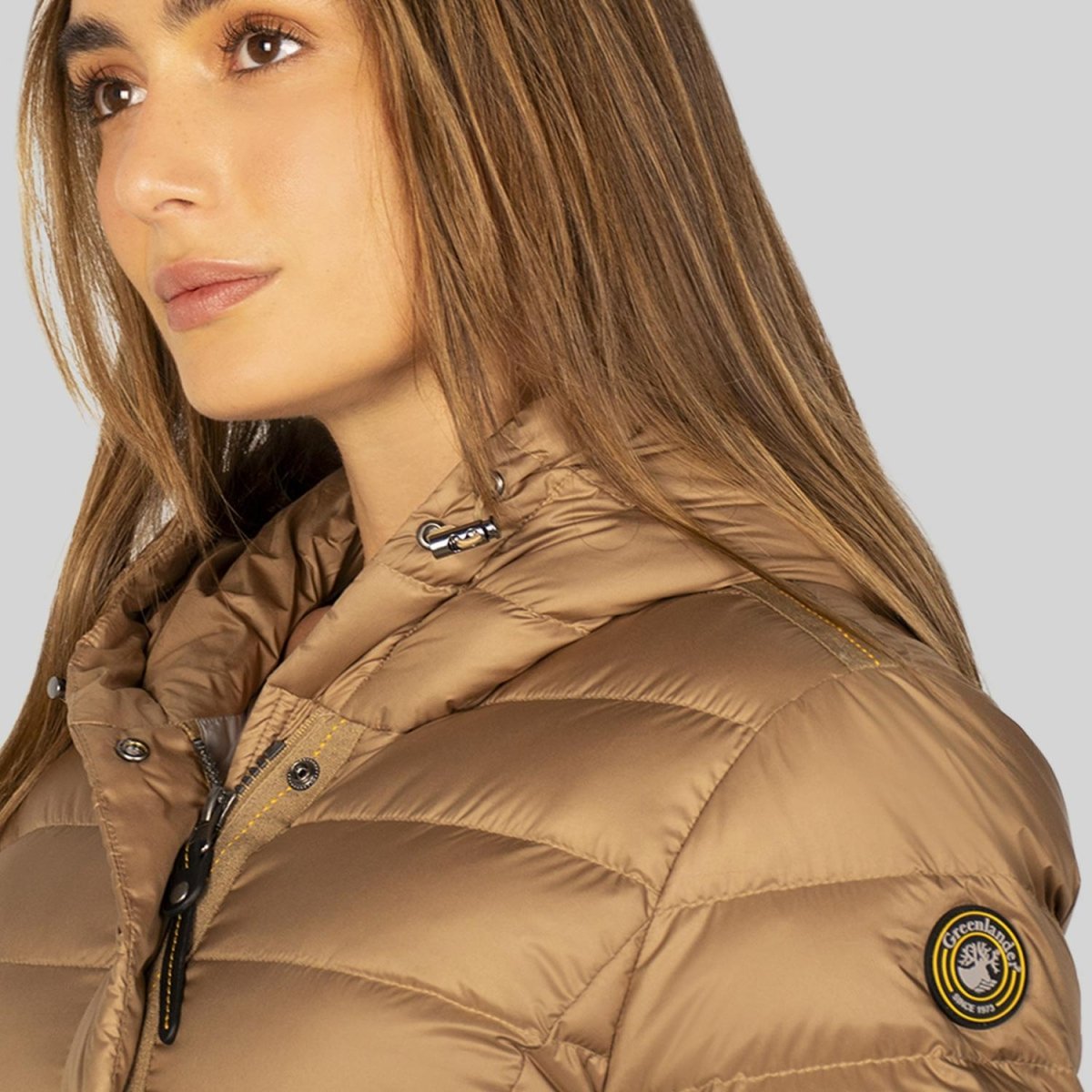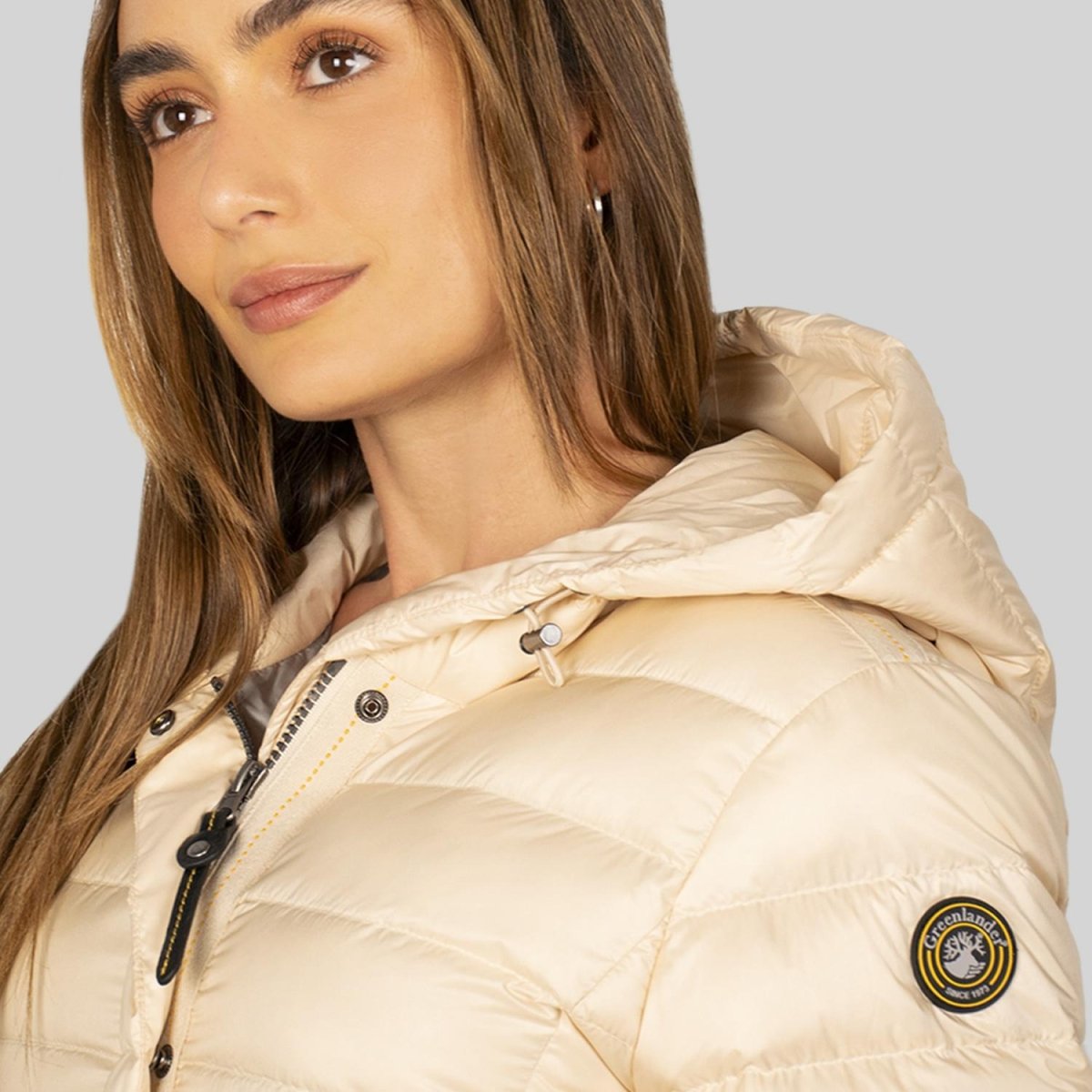 Chamarra larga capitonada para mujer con capucha Greenlander