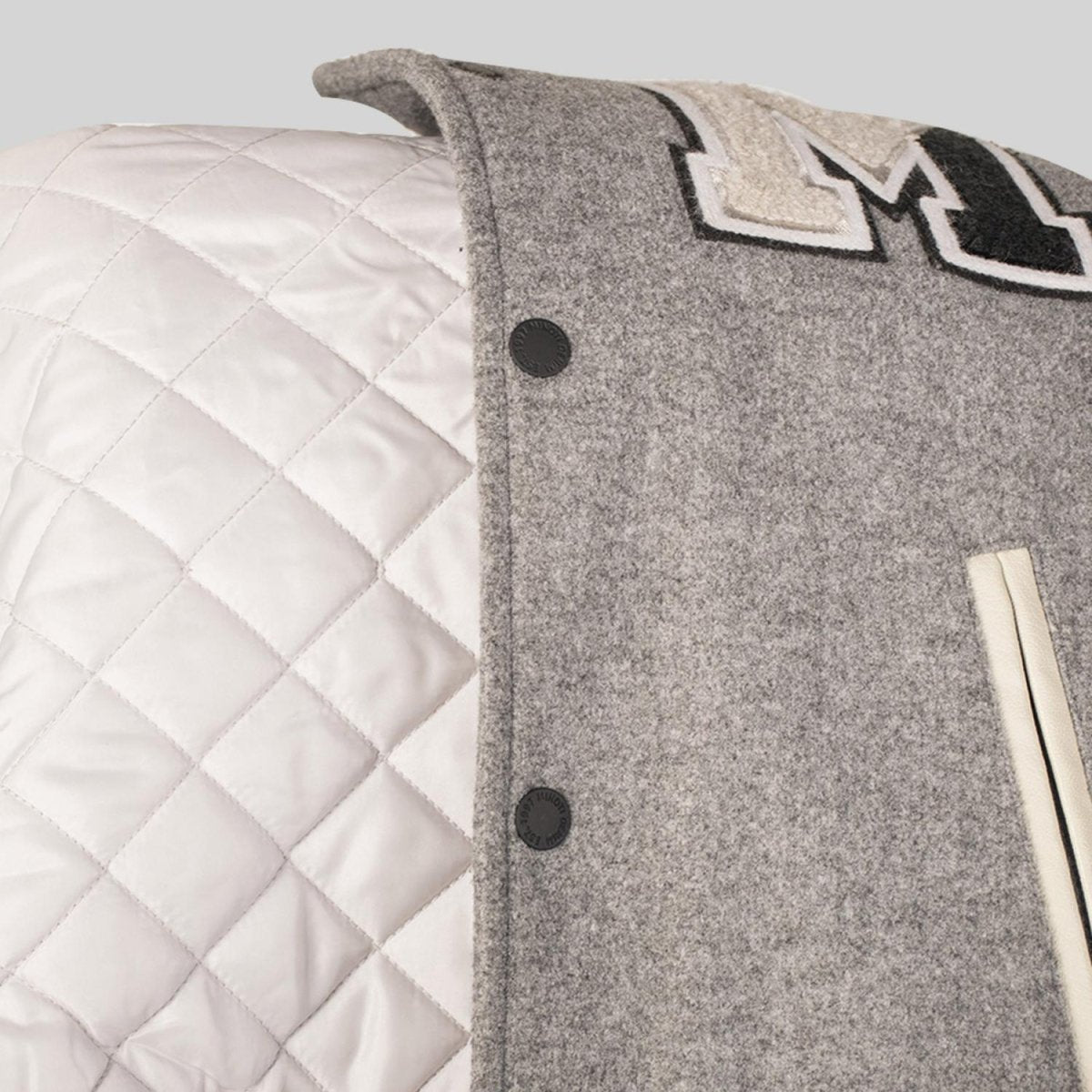 Broches de presión con logo grabado: Aportan practicidad, resistencia y carácter moderno. "La chamarra varsity fusiona tradición y tendencia. Versátil, cómoda y con carácter, es el aliado perfecto para un look urbano con identidad.