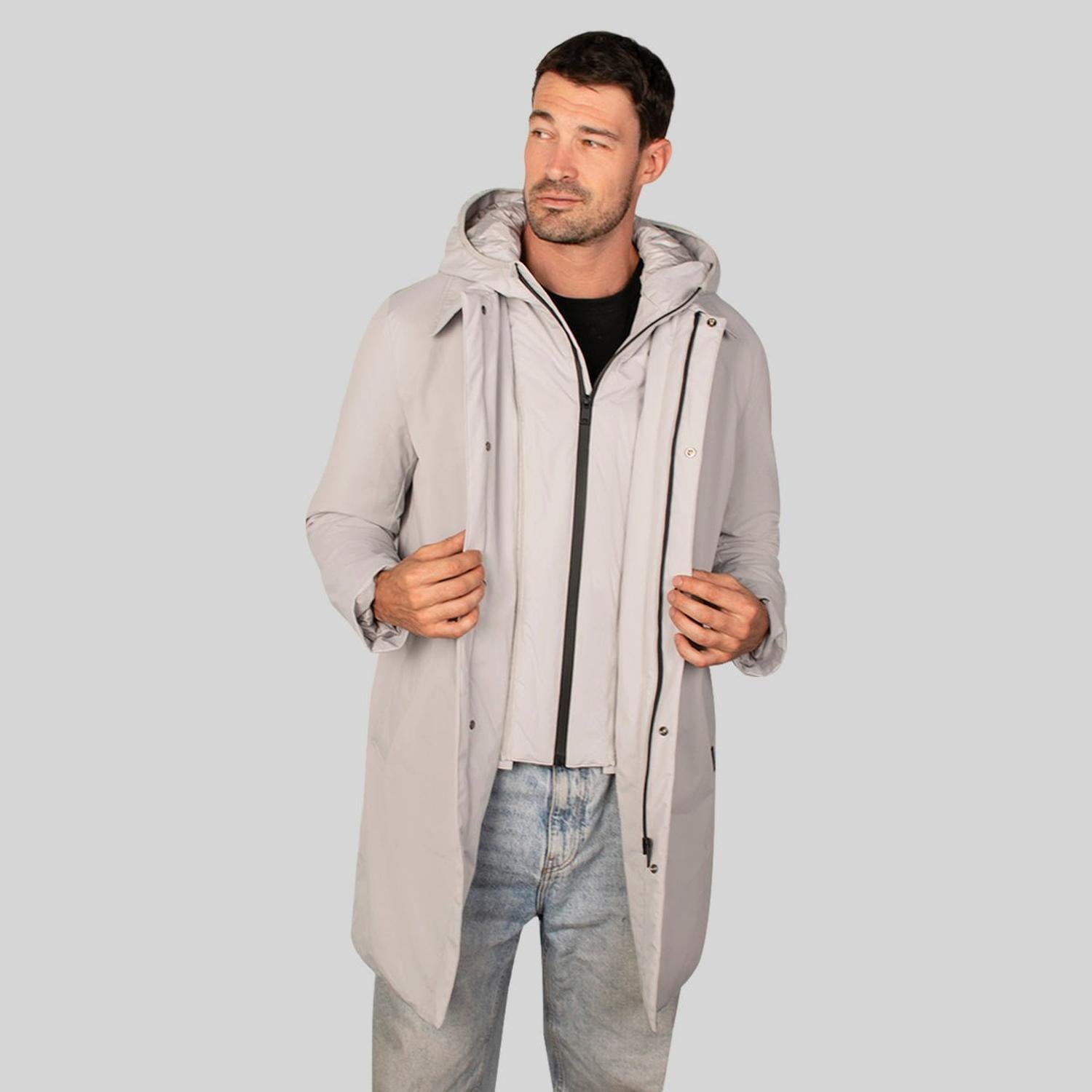 Gabardina Larga Para Hombre Con Pechera Desmontable